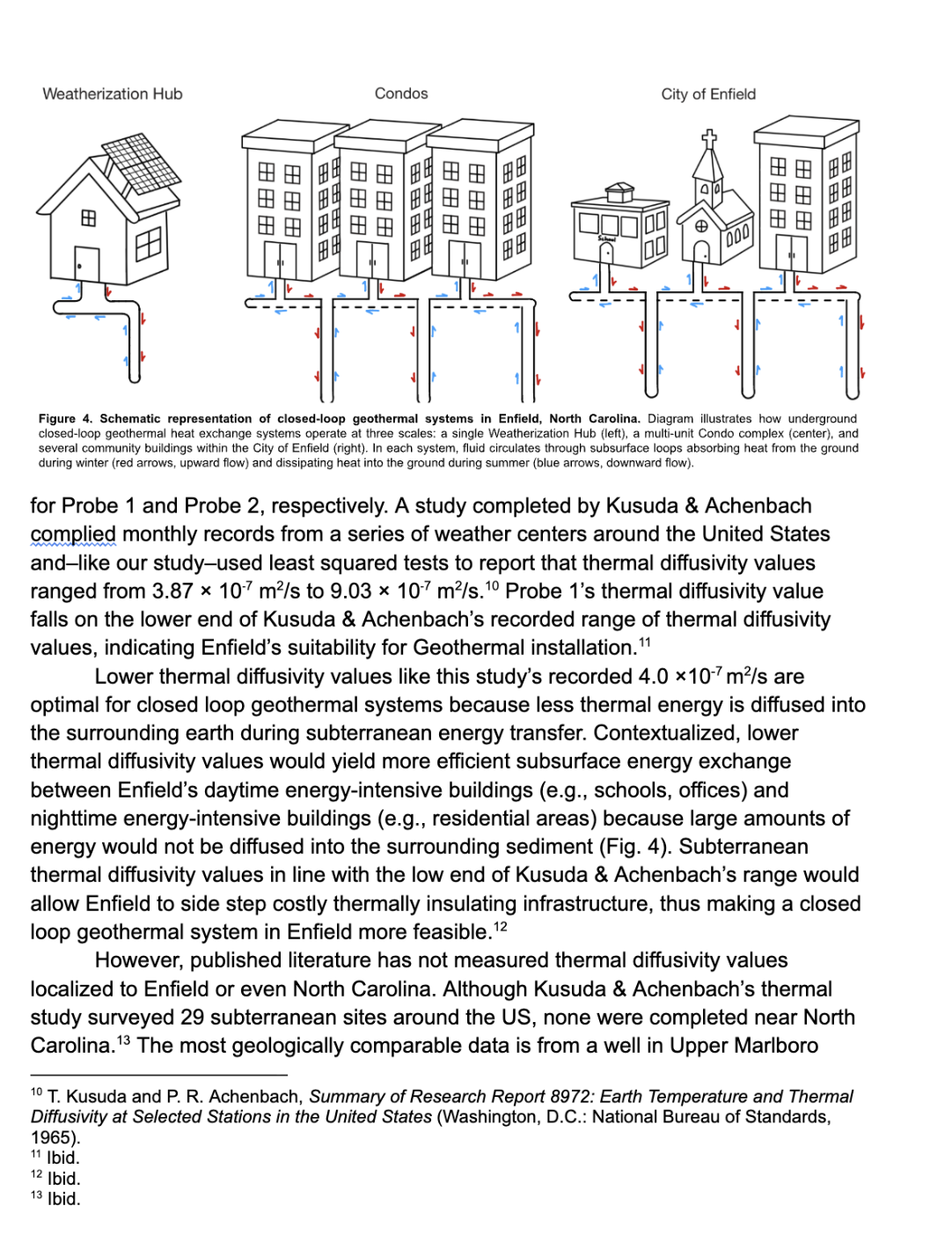 This semester, I worked on an alternative energy feasibility project focused on whether geothermal energy could be a viable option for Enfield, North Carolina (one of the lowest-income towns in the US). The goal of my project was to collect and analyze real field data to determine whether the local geology and heat transfer characteristics made geothermal feasible.